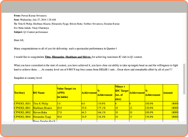 Recognised for converting Chandigarh’s biggest site to date (₹22.8 lakh ≈ $30K+ project value) into the Asian Paints premium portfolio. This wasn’t just about sales volume; it was about persistence in tough markets, driving premium product penetration, and flawless execution. Praised by senior leadership, it stands as a milestone of turning challenges into record-setting wins.